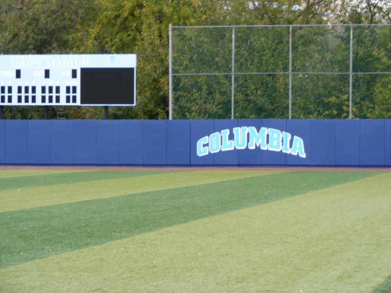 Our stadium padding is manufactured for years of performance. Protecting little leaguers to the most elite of athletes. These pads are constructed on 3/4" exterior grade plywood that is sealed to protect from moisture. rthey feature a 3" foam core and a 16oz vinyl laminate. The vinyl cover is treated for UV resistence and sports a rain clean finish that promotes self cleaning. All covers are attached to the backerboard using stainless steal staples. Our standard pad is 4' x 8' with a 6" lip on the bottom to sit on the field but still allow clearance for grooming equipment. All pads have brass grommets located on the bottom edge for drainage.