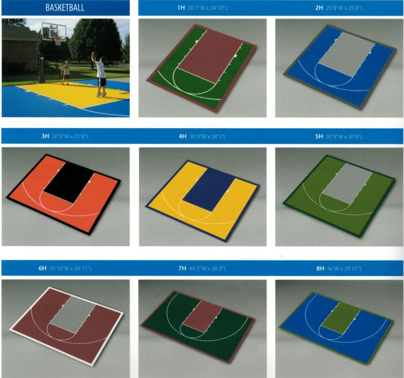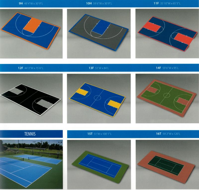 Tiles are available in 17 standard colors. Colors can be mixed and matched for a custom court appearance. All game lines and logos can be factory applied to ensure accurate dimensions and a long lasting application.